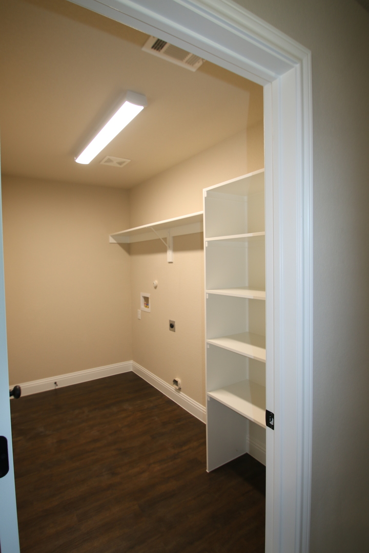 The Laundry Room - Conveniently located off the kitchen with full-size washer and dryer connections and built-in shelving for all your storage needs.