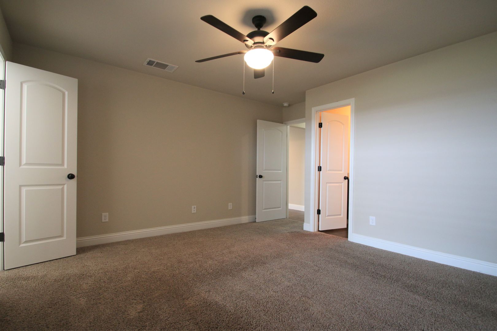 Master Retreat — Generously sized with upgraded carpet, ceiling fan, and a spacious walk-in closet (select units).